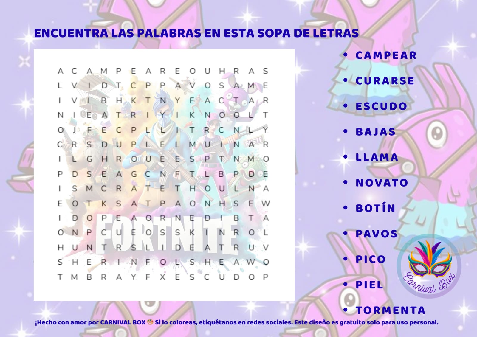 Sopa de letras de Fortnite para imprimir gratisDescarga